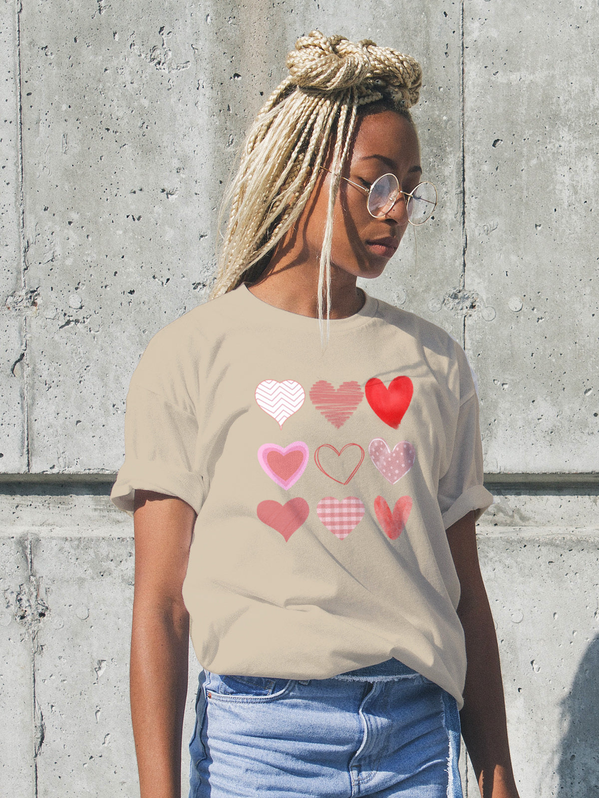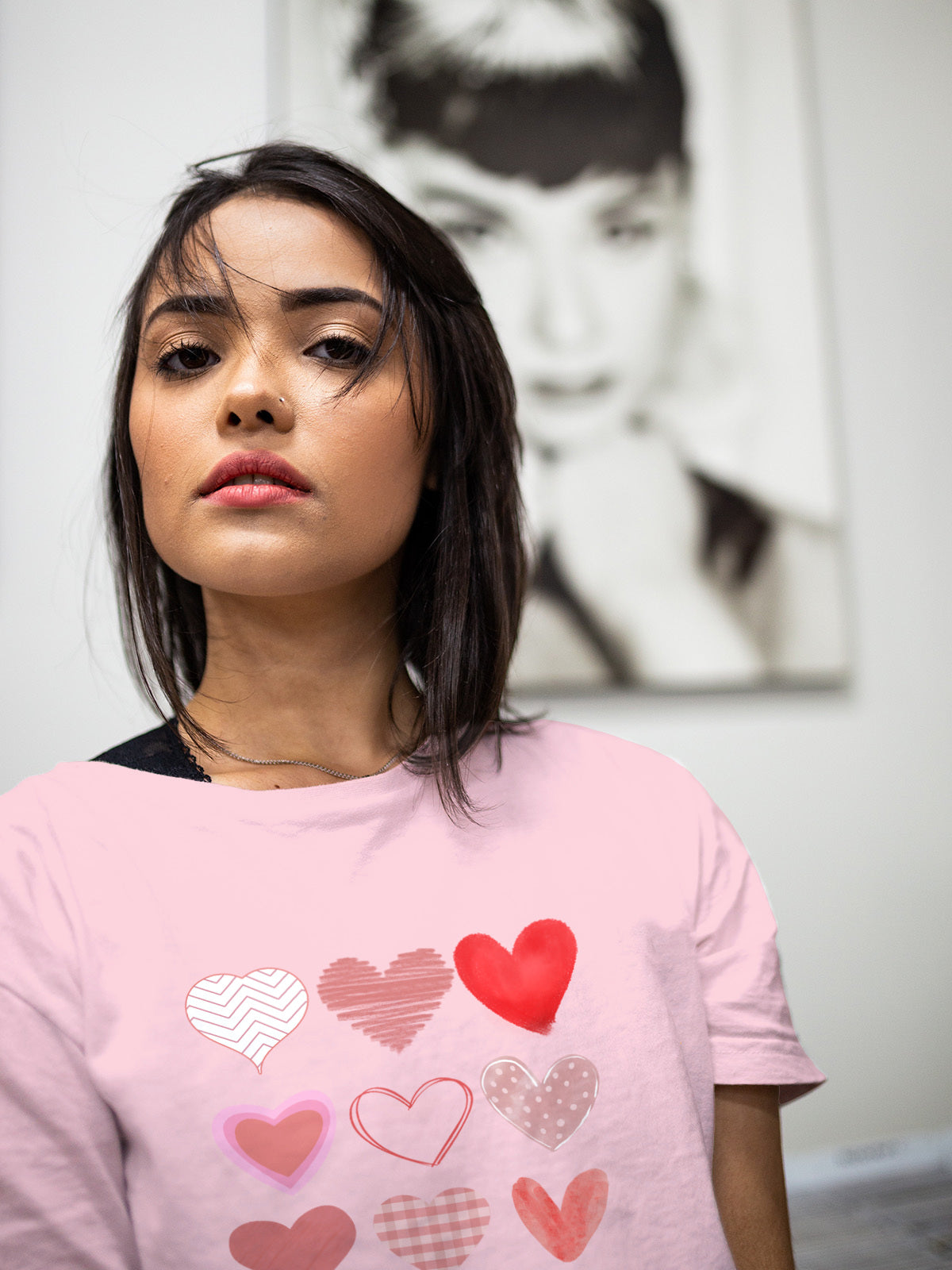 Minimal yet expressive, this Valentine’s Day graphic t-shirt blends modern layout with timeless symbolism. The varied heart designs create visual interest while keeping the overall look simple and versatile, making it perfect for everyday wear, Valentine’s gatherings, or gifting someone special.